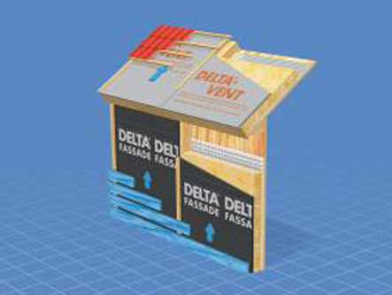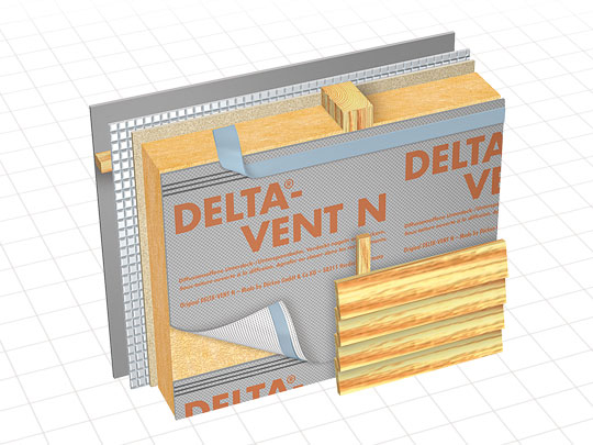 DELTA-FASSADE je trajno UV stabilna dvoslojna folija (vrlo otporan PE geotekstil kao osnova i specijalnog vodootporanog paropropusnog gornjeg sloja).